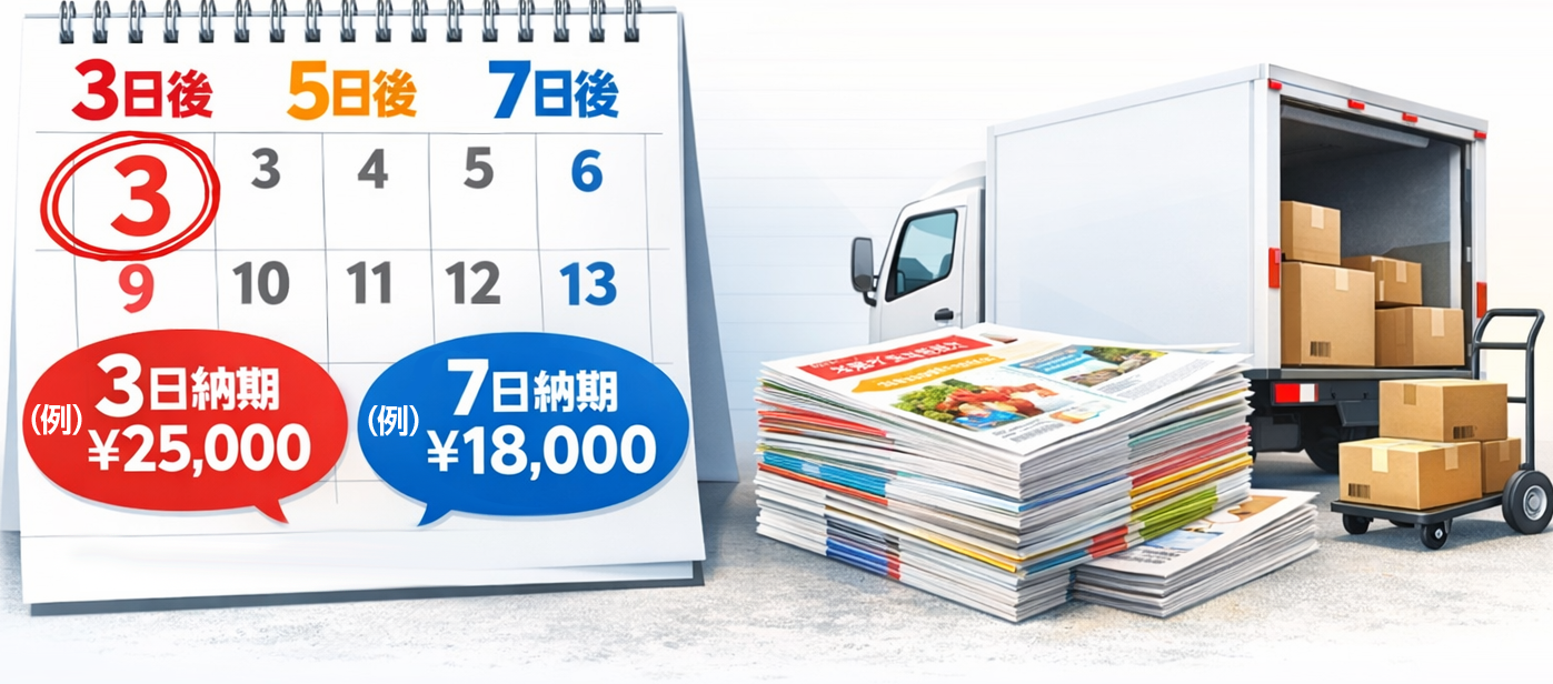 今回は、ネット印刷特有の納期設定と、価格を安く抑えるためのコツを分かりやすく解説します。